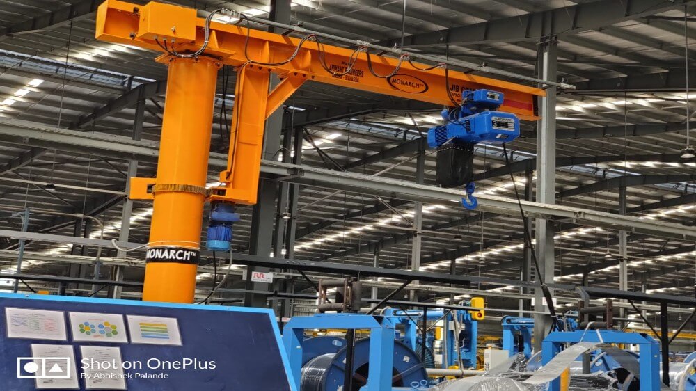 Jib cranes stand for superior quality products. They are an important part of any Mild Steel Material handling system. They help reduce labor cost by avoiding the time lost on waiting for an overhead crane or forklift.